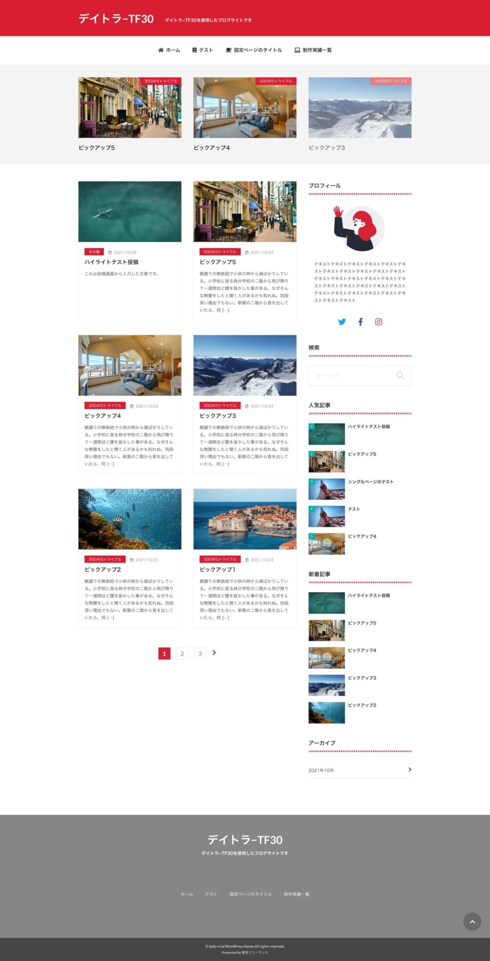 ブログサイトのデモサイトです。HTML静的サイトからWordPress化をいたしました。トップページに新着記事一覧表示、人気記事一覧表示、ピックアップ記事表示、ページネーション追加、投稿ページに関連記事表示、固定ページに目次テーブル表示、パンくず表示などが主な機能です。また制作実績一覧はカスタム投稿、カスタムタクソノミーで制作ジャンルを分け、カスタムフィールドにより管理画面の入力設定を行いました。
