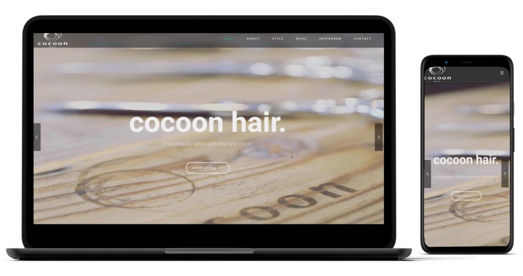 新潟市西区の美容室「cocoon hair」様のWebサイトを制作させていただきました。Bootstrapで構成されたHTMLテンプレート「Canvas」を使用して、カスタマイズコーディングをして作成しました。ディレクションから、デザイン、写真選定、テキスト考案、サーバーへのアップロード、公開に至るまで一人で行いました。また、OGP設定や、Googleサーチコンソールの設定も行いました。また、サイト設計として、Google mapの埋め込みの他、写真からInstagramやLINEへ、予約ボタンのところからホットペッパービューティーに遷移できるようにいたしました。