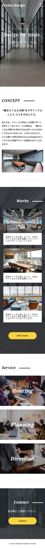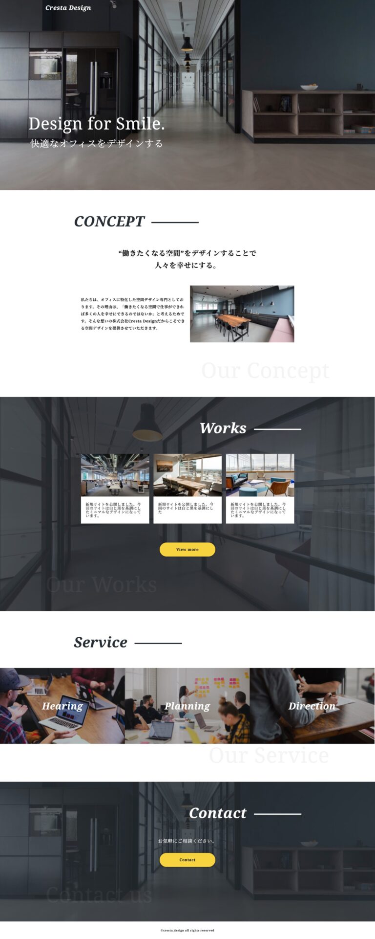 架空のデザイン事務所のサイトです。AdobeXDデザインカンプから、HTML / CSS / jQueryコーディングをいたしました。レスポンシブ込みでコーディングを行い、お問い合わせフォームの実装、jQueryによるスティッキーヘッダー、スマホ時のハンバーガーメニューの実装、slick.jsを使用しメインビジュアルのスライダーも実装しました。