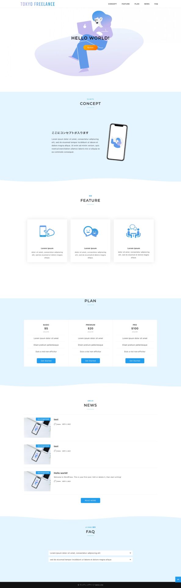 ランディングページのDemoサイトを制作しました。WordPressテーマ「Snow Monkey」を使用して制作しました。画像のフェイドアップアニメーション、ページ内スクロールなど、頻出する機能を実装しています。また、タイトル、見出しのフォント変更、FAQの背景色変更を追加CSSで実装しています。